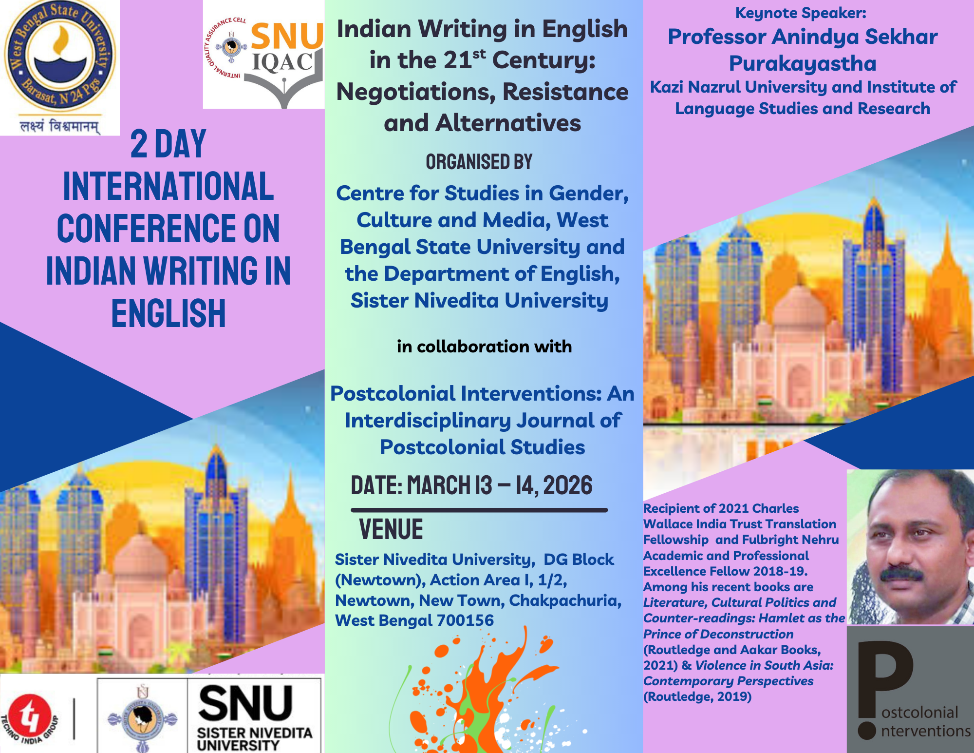 Postcolonial Interventions in association with Centre for Studies in Gender, Culture and Media, West Bengal State University and the Department of English, Sister Nivedita University invites abstracts for an international conference on Indian Writing in English to be held in Sister Nivedita University, New Town, West Bengal on 13-14 March 2026.