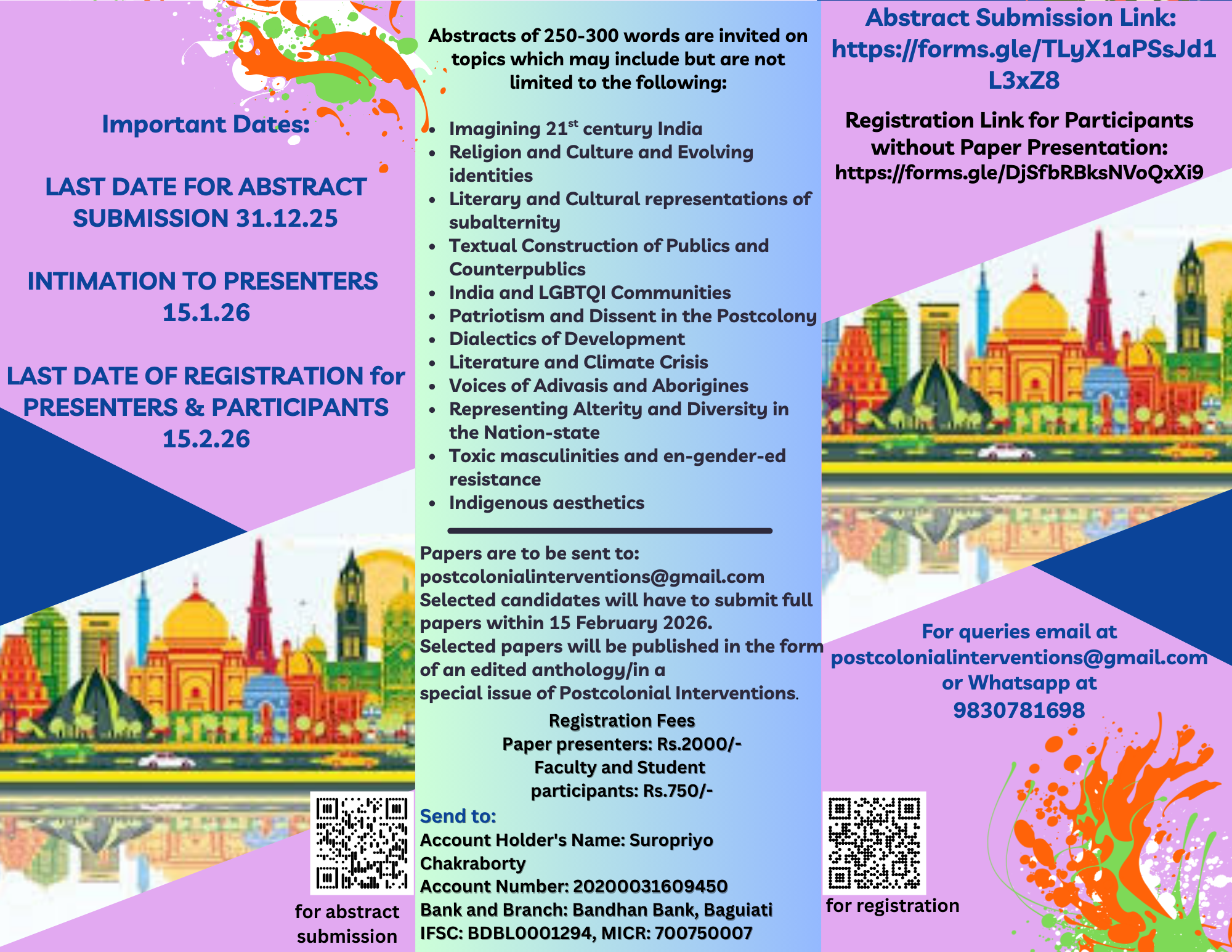 All queries may be sent to postcolonialinterventions@gmail.com OR 9830781698 (Whatsapp)